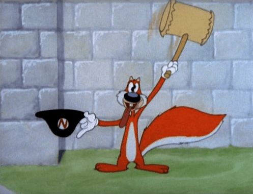 [Di seguito si può vedere, in Screwball Squirrel, l’agguato al zuccheroso scoiattolino Sammy: al quale, alla fine del cartone, sarà poi riservata una doppia razione di legnate]
